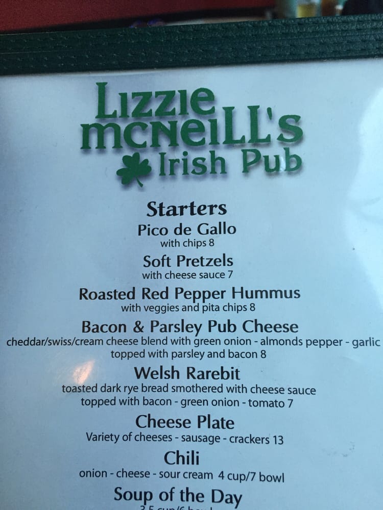 Lizzies lamb and chuck mix, cheddar garlic mashed potatoes, topped with melted Harp Dubliner cheddar and chives
